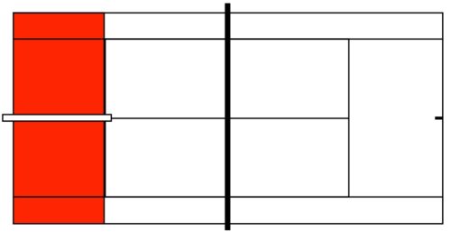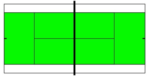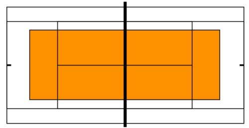 Spielfeld: 11m-12m lang x 5m-6m breit, Netzhöhe 80cm
